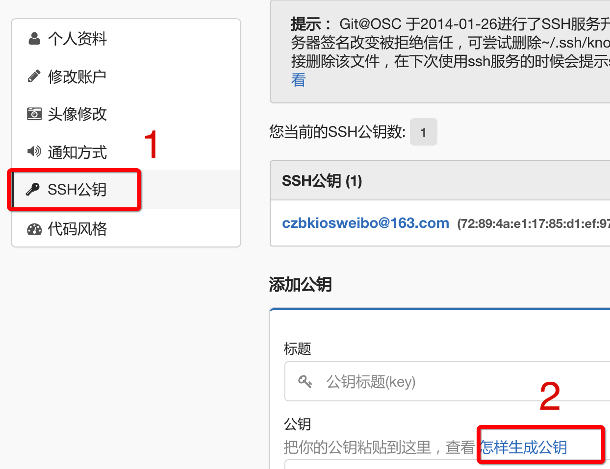 开源中国服务器上面 - 开源中国帮助文档地址:https://git.oschina.net/oschina/git-osc/wikis/帮助#ssh-keys